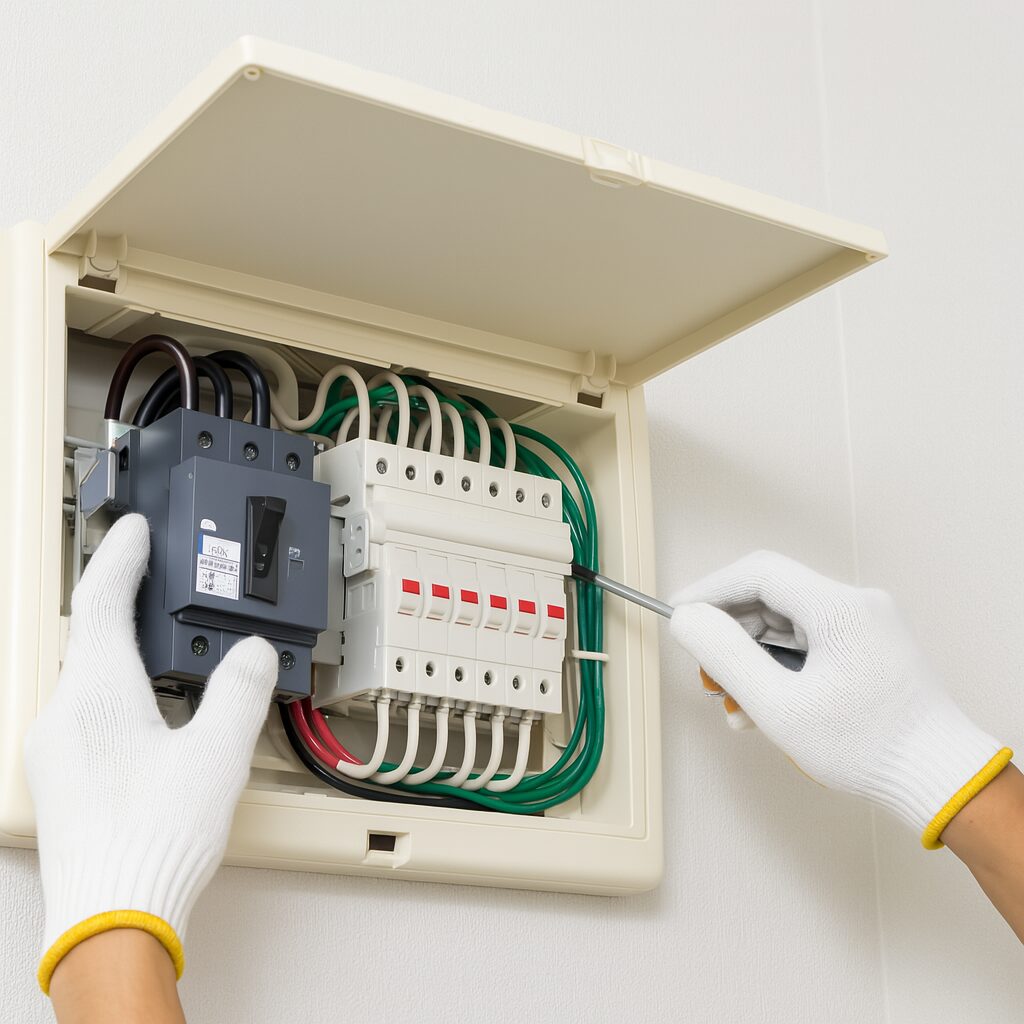 守谷市の戸建て住宅にて、老朽化した分電盤の交換工事を行いました。築30年を超えた建物で、ブレーカーが落ちやすくなったり、ラベルが消えていてどの回路か分かりにくいというお困りごとがありました。新しい分電盤は安全性の高い漏電遮断器付きで、各回路に分かりやすくラベリングも実施。これにより、突然の停電トラブルにも落ち着いて対応できるようになりました。ご家族からは「きれいになって安心感もある」と喜びの声をいただきました。